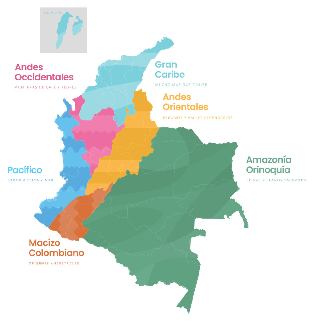 Haz realidad tu viaje a través de la diversidad y magia de Colombia. Comienza en los Andes Occidentales con sus montañas de café y flores. Continúa hacia el Pacífico, donde la selva y el mar te envuelven en naturaleza y biodiversidad. El Gran Caribe te ofrece mucho más que playas, con una mezcla vibrante de culturas. Explora los Andes Orientales y sus páramos legendarios. En el Macizo Colombiano, conecta con los orígenes ancestrales. Finalmente, adéntrate en la Amazonía y Orinoquía, donde las selvas y llanos sagrados revelan secretos naturales. Cada región es una joya única, esperando ser descubierta.